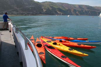 Your adventure starts as soon as you board the catamaran, 'Obsession II'. This is a fast motor boat and the trip from Ilfracombe to Lundy takes only an hour. 'Obsession II' can carry up to 12 passengers and 8 sea kayaks it has a fly bridge on top of the wheelhouse which is an ideal way to spot dolphins and other wildlife during the exhilarating crossing.